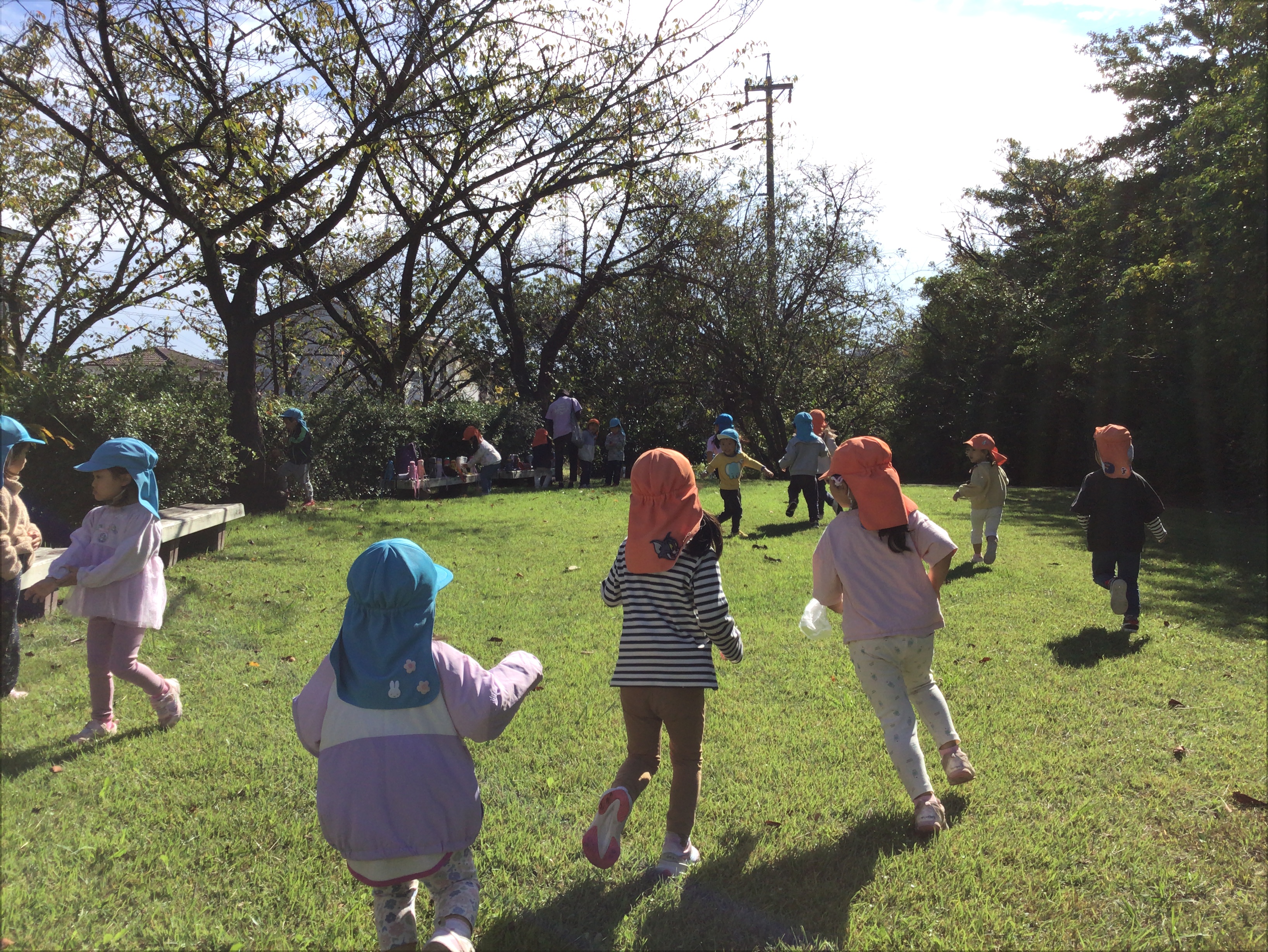 並木道にどんぐりを拾いに行ったり、南休公園で一緒にしっぽ取りをしたり、ヤギの触れ合いに一緒に出かけたり2クラス一緒にでかけることも増えてきました。お互いが良い刺激になっていて笑顔が増えてきたように思います!