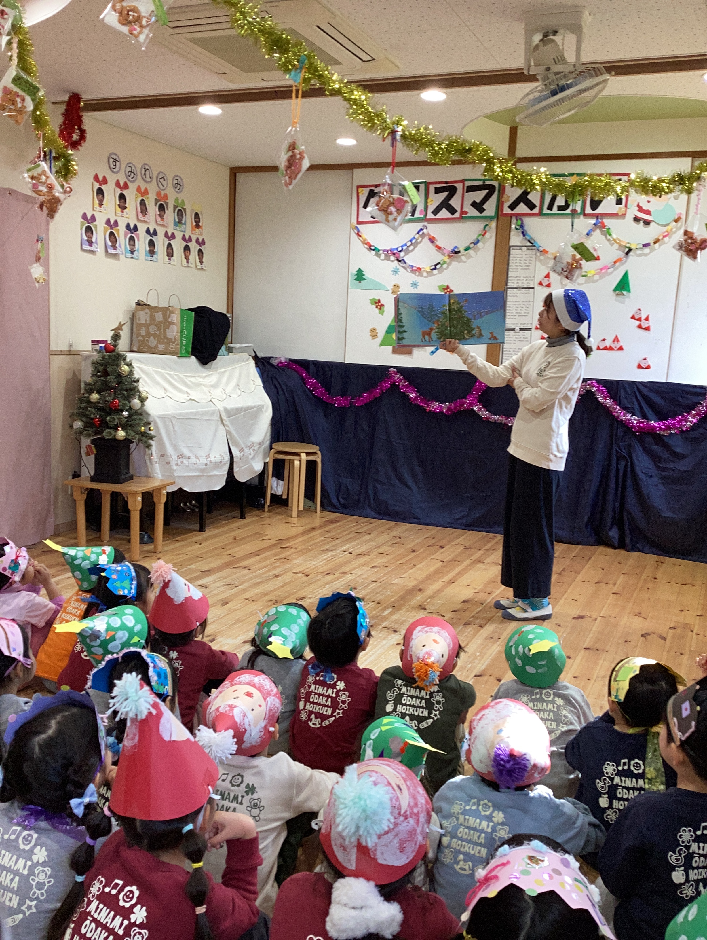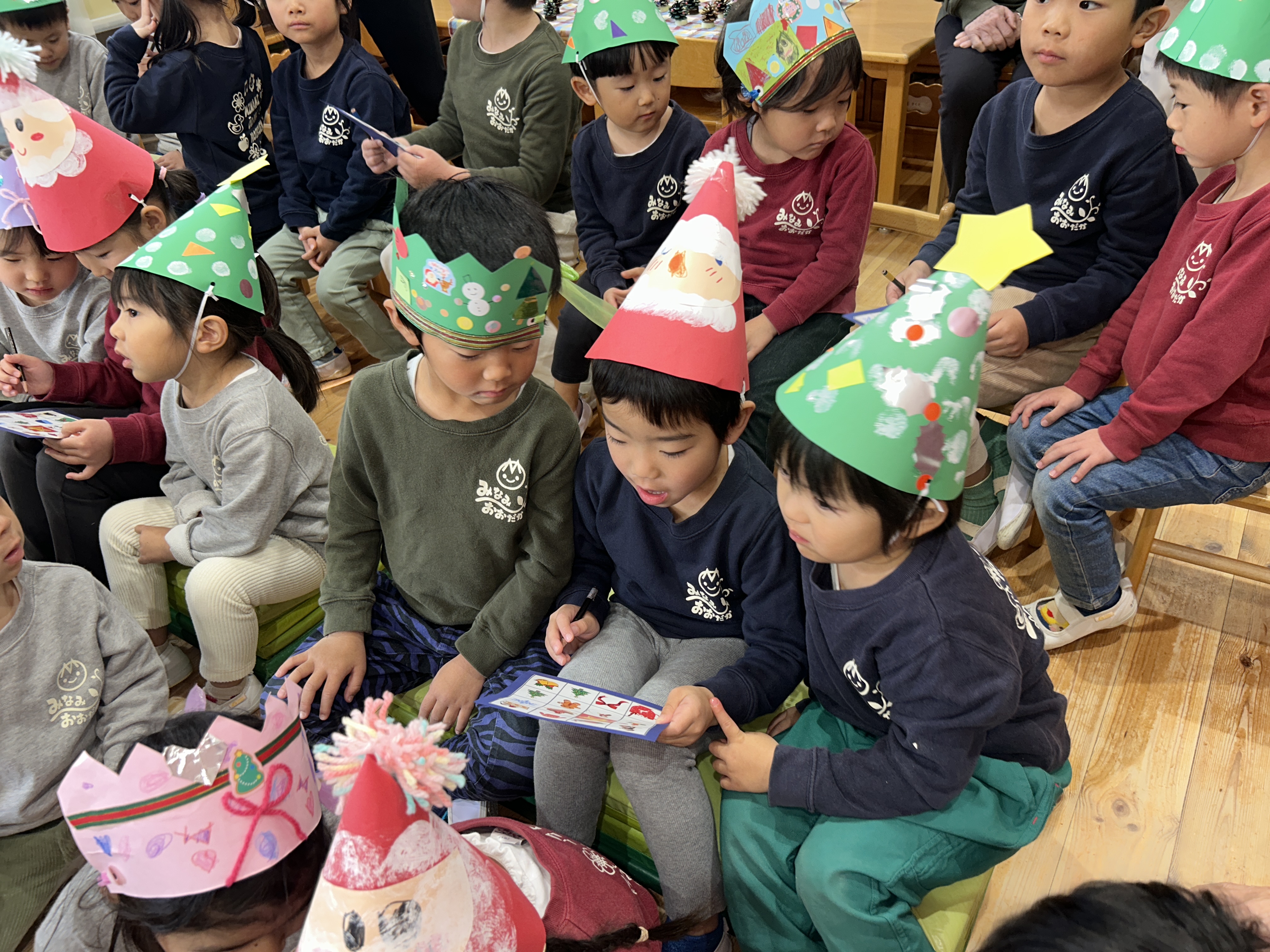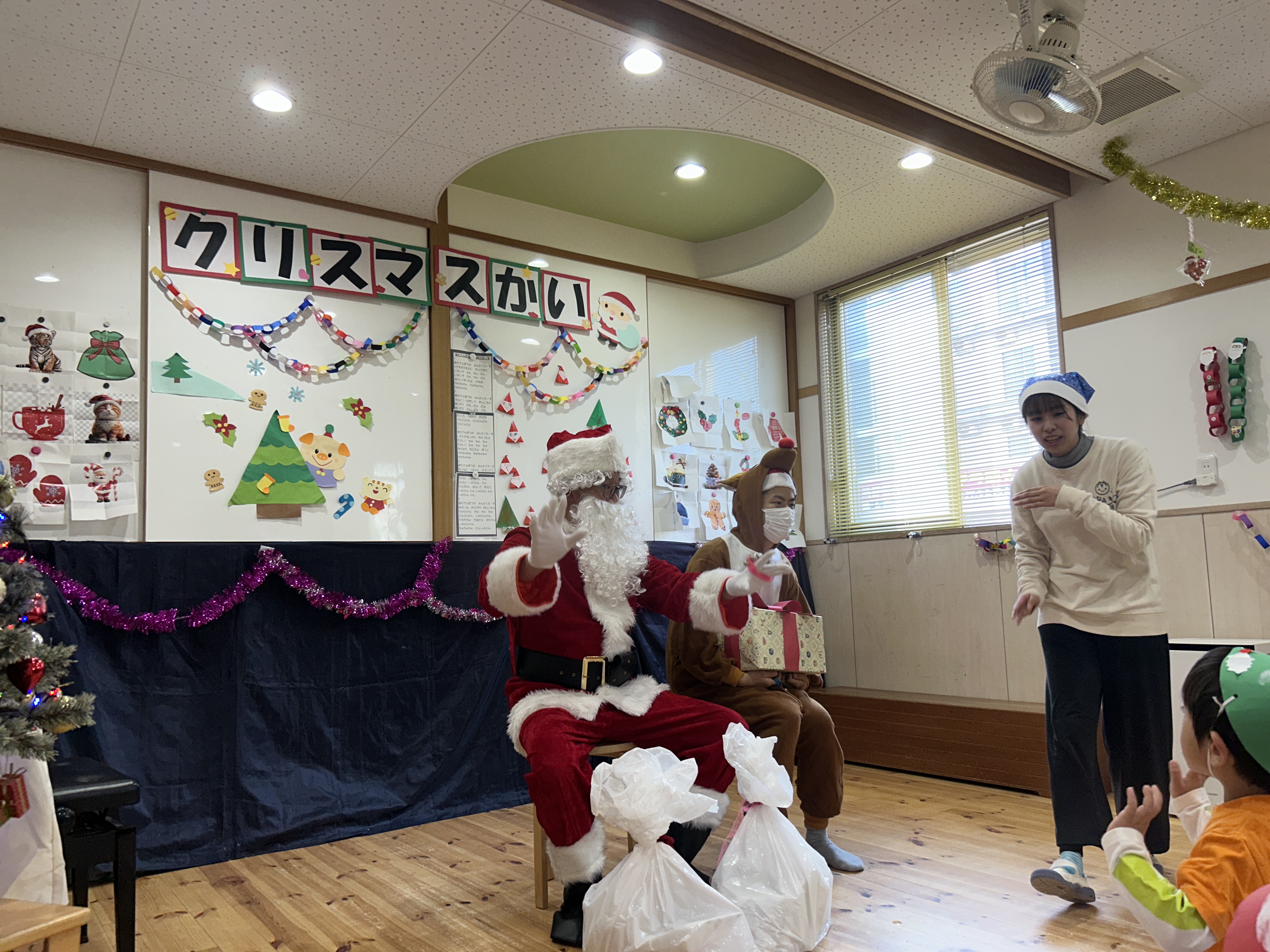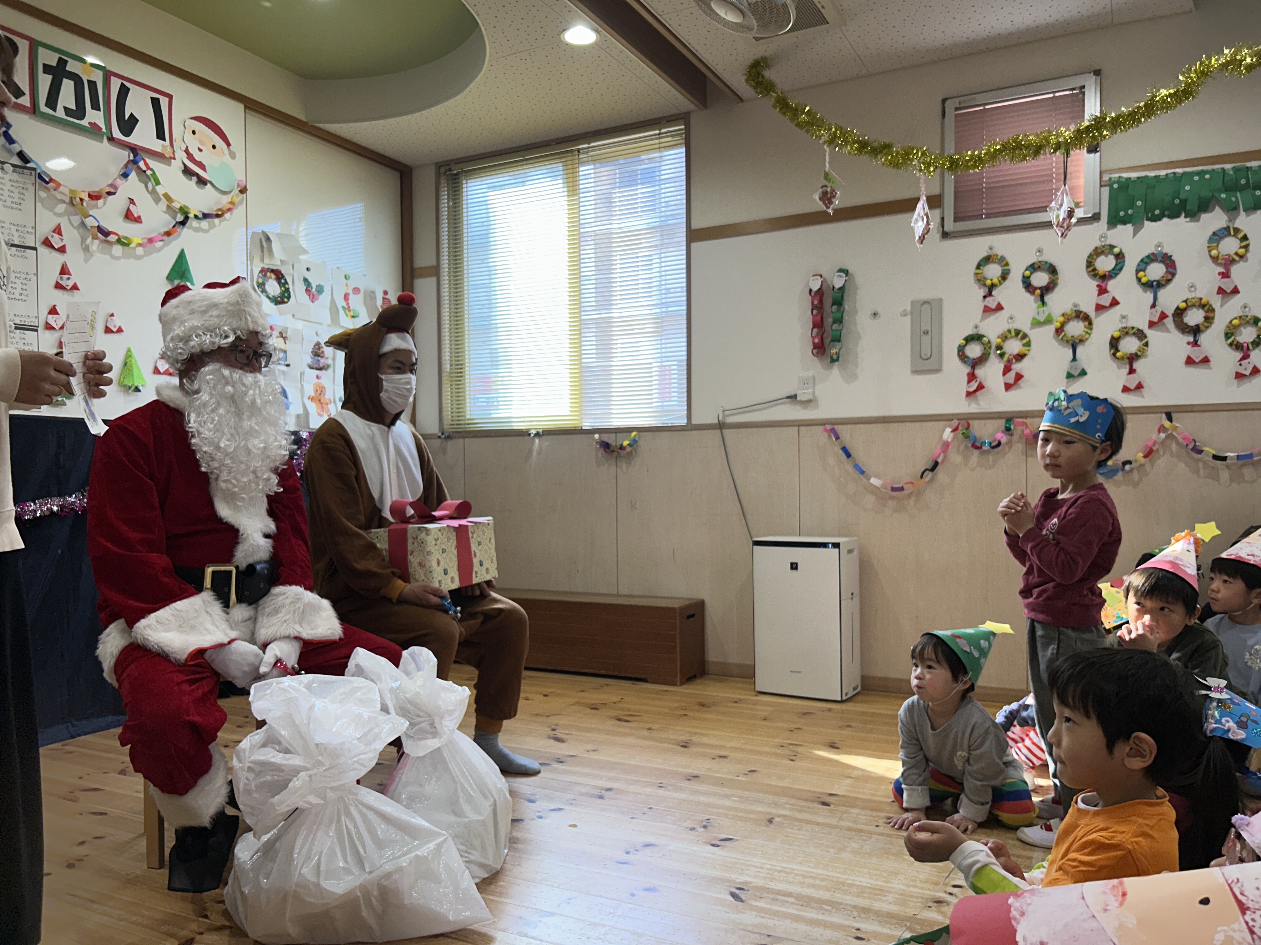 12/19(金)に待ちに待ったクリスマス会がありました♪ 「今年もサンタさんとトナカイさんくるかな?」と心を躍らせる子どもたちは期待を持って参加しました。