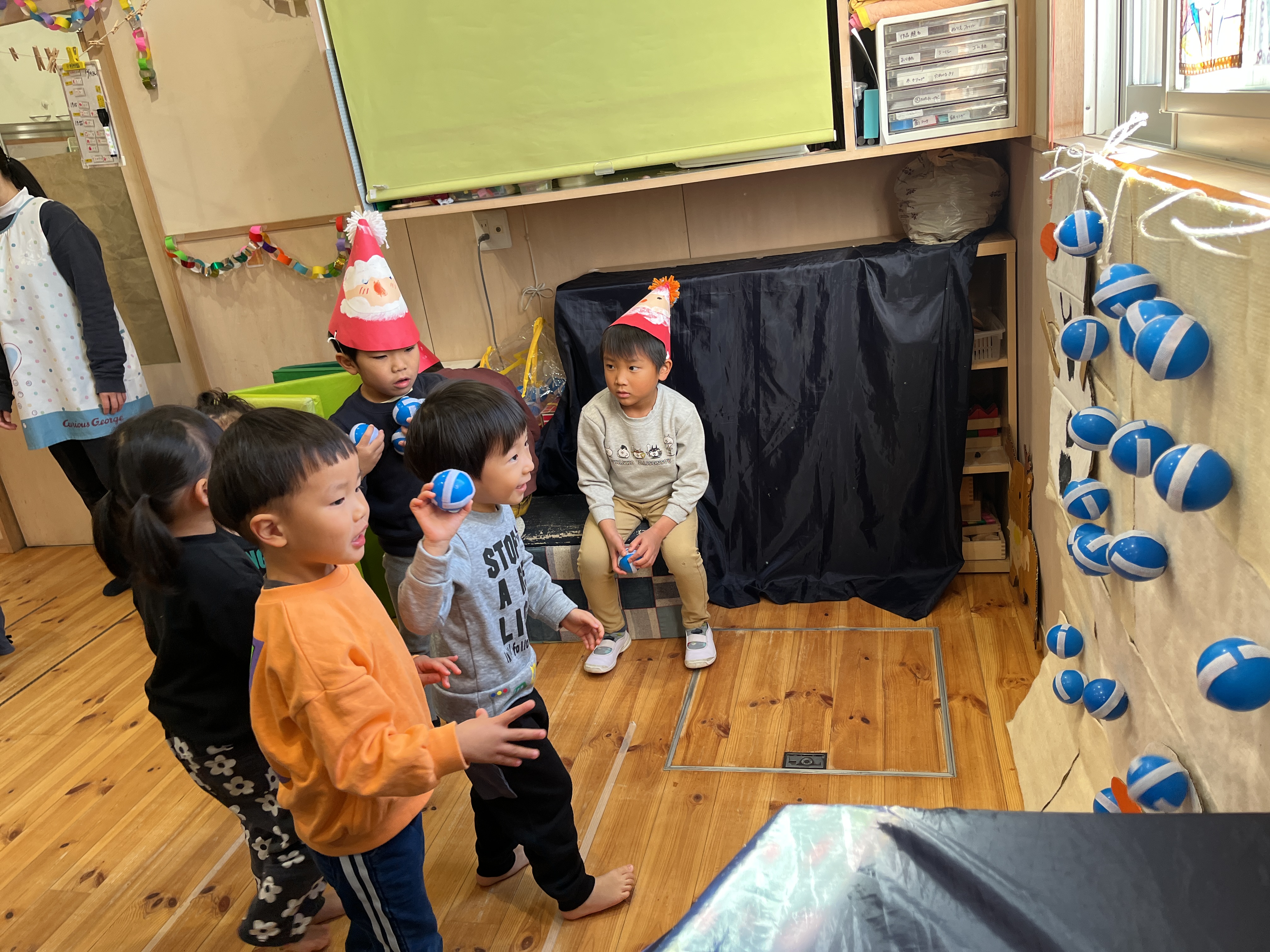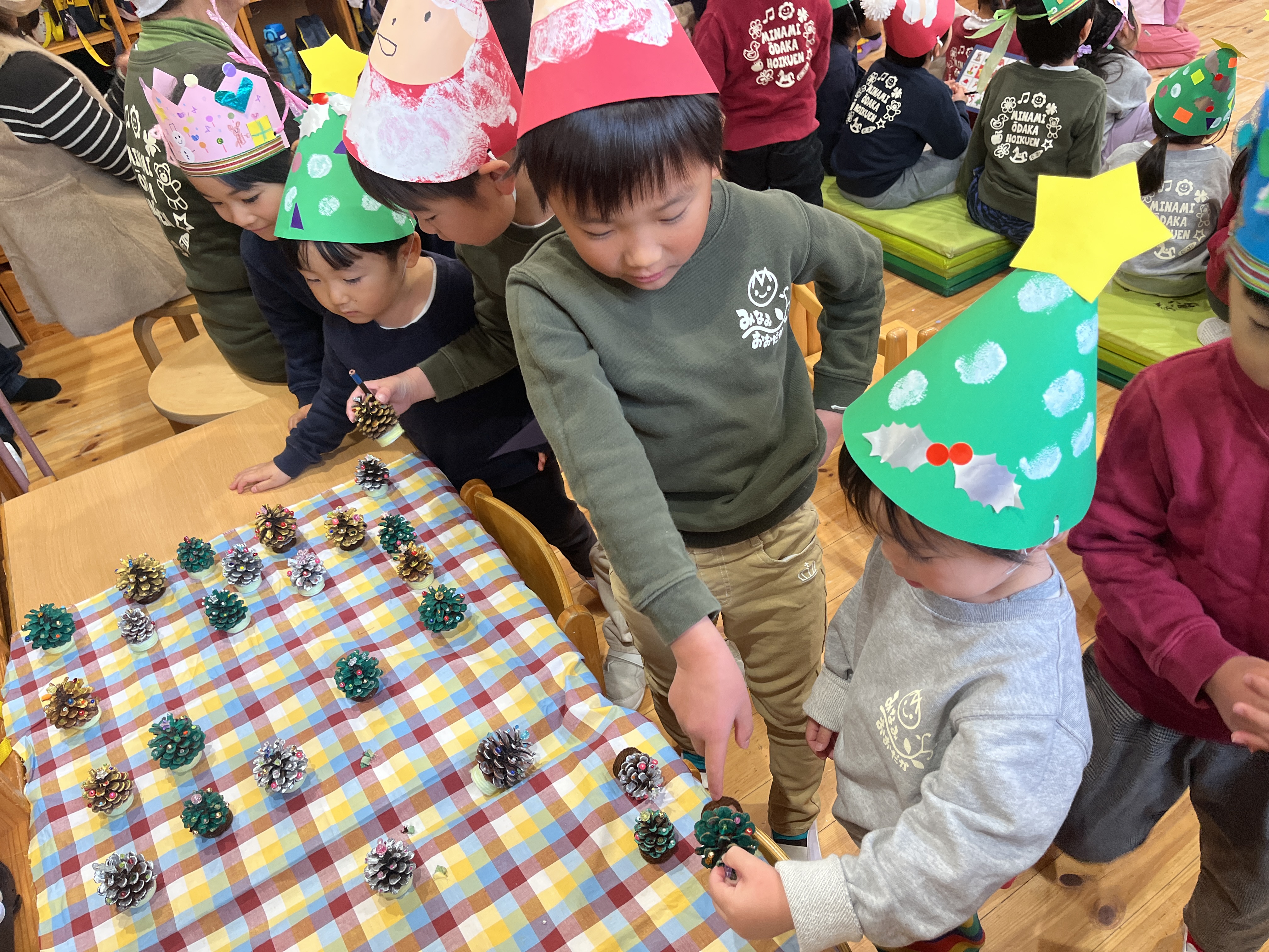 後日、さくら組では『クリスマス作品展&縁日』を開催し、他のクラスの友達を招待しました✨