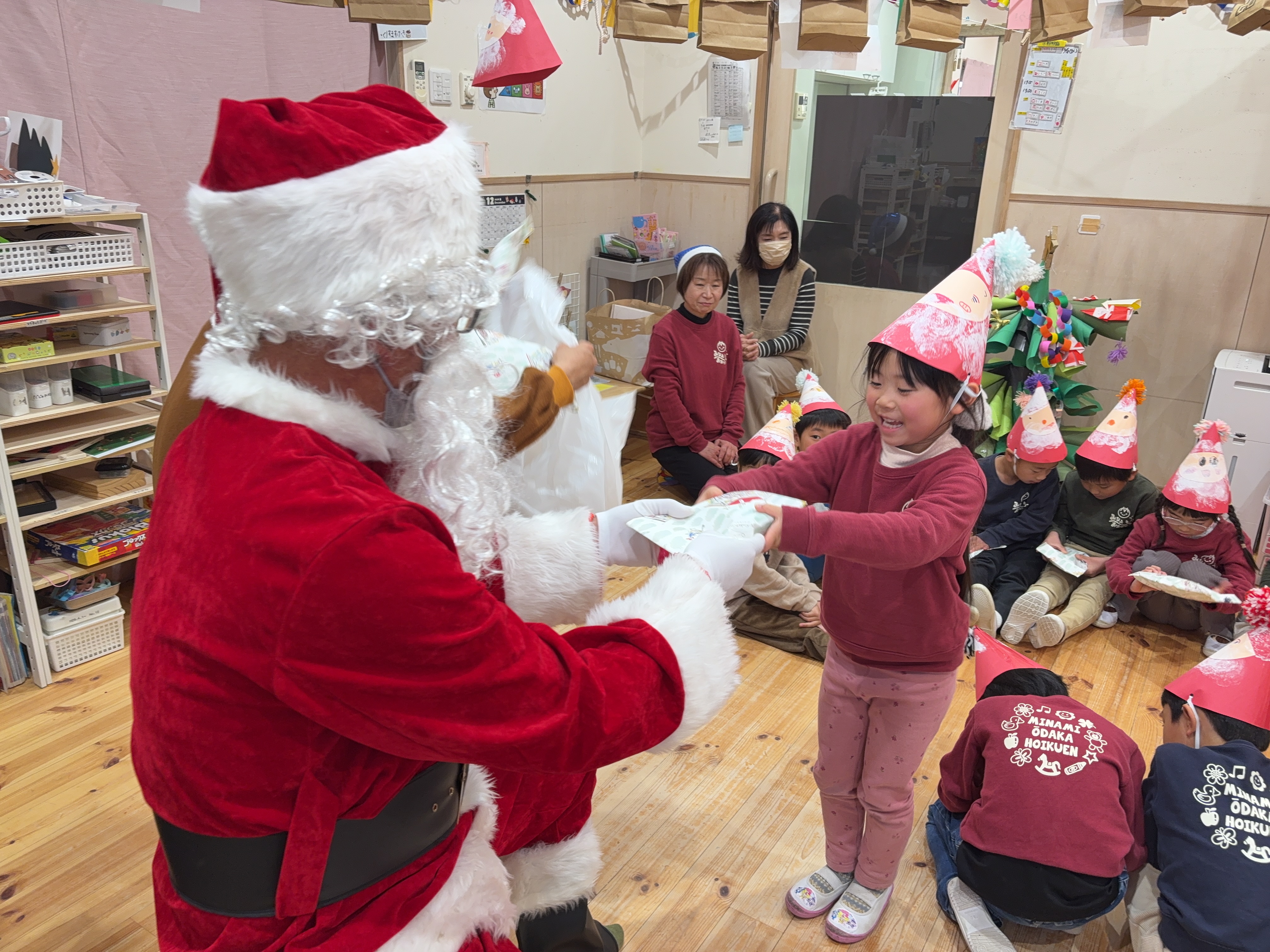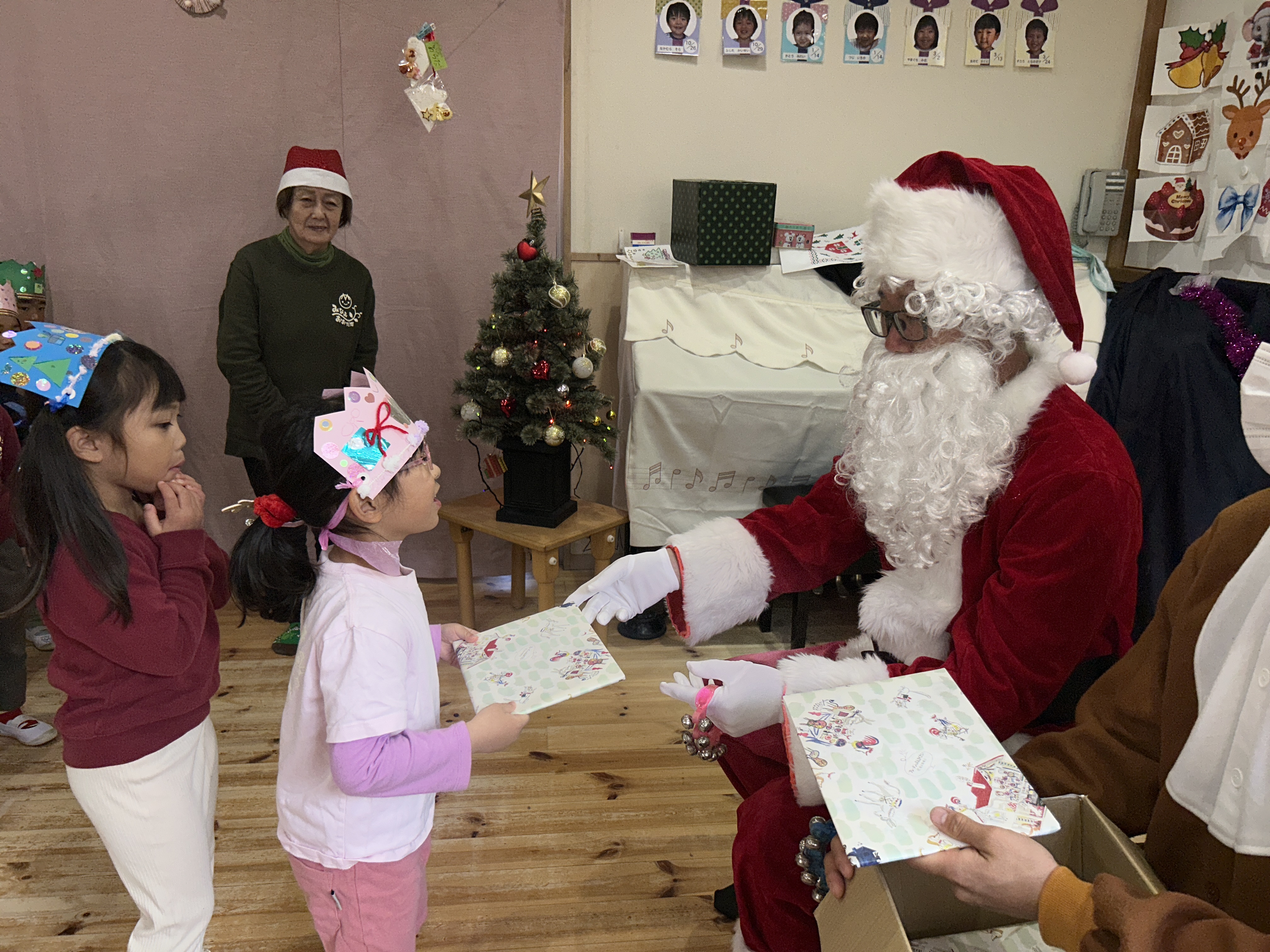最後は1人ずつプレゼントを貰ってウキウキな子どもたち。挨拶も「メリークリスマス!」「おはようございます!」など様々でした。