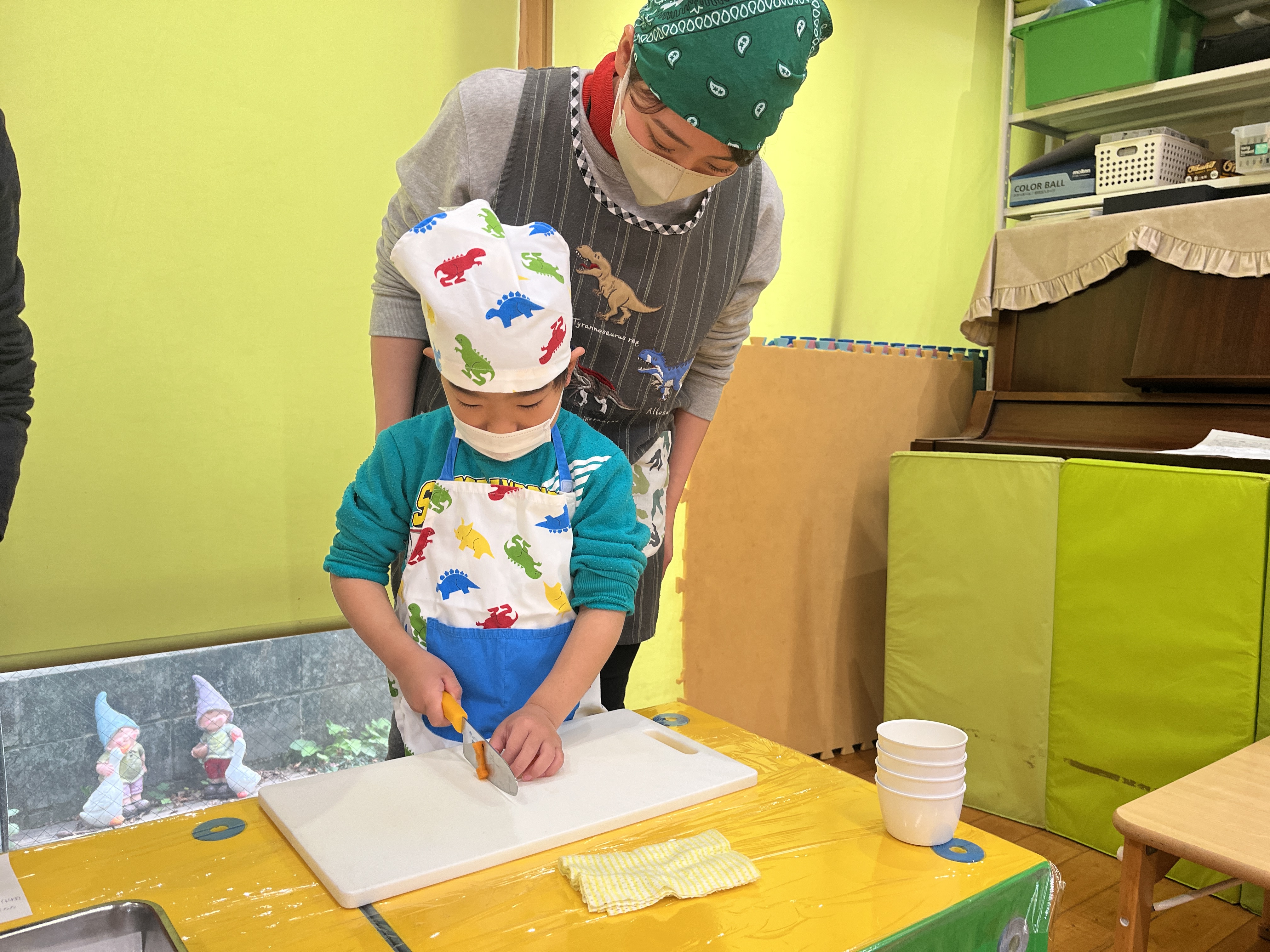 「包丁は猫の手」とても頼もしい年長さん。